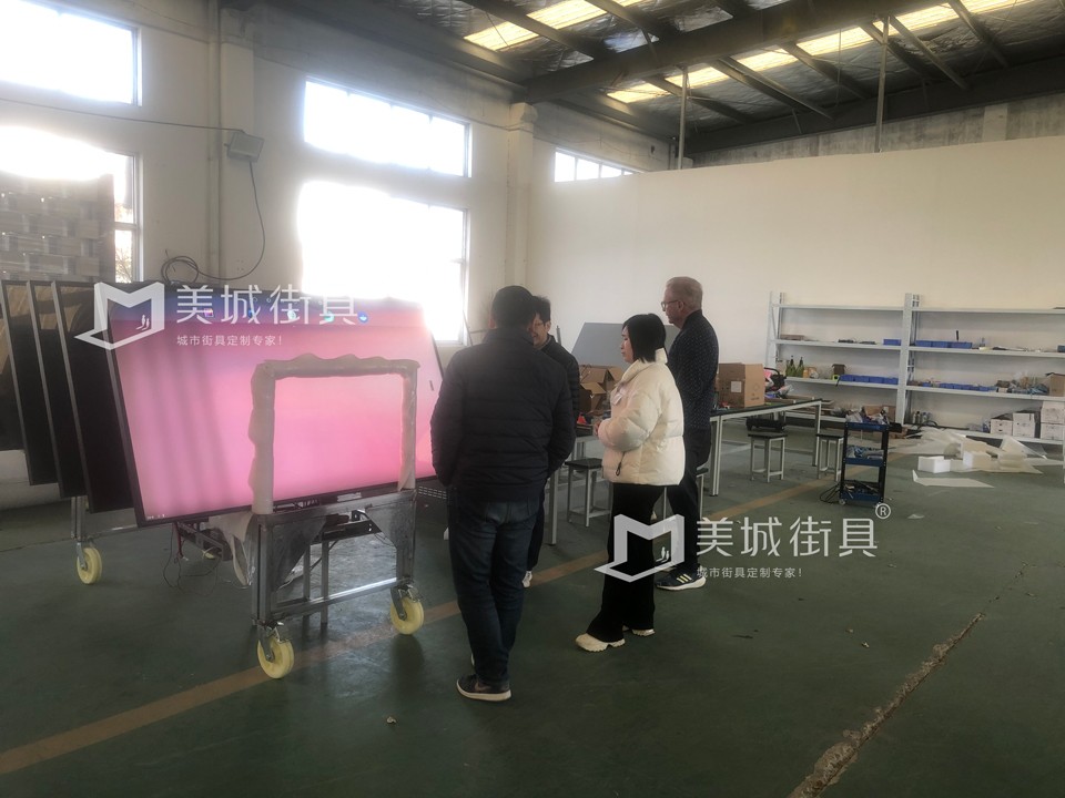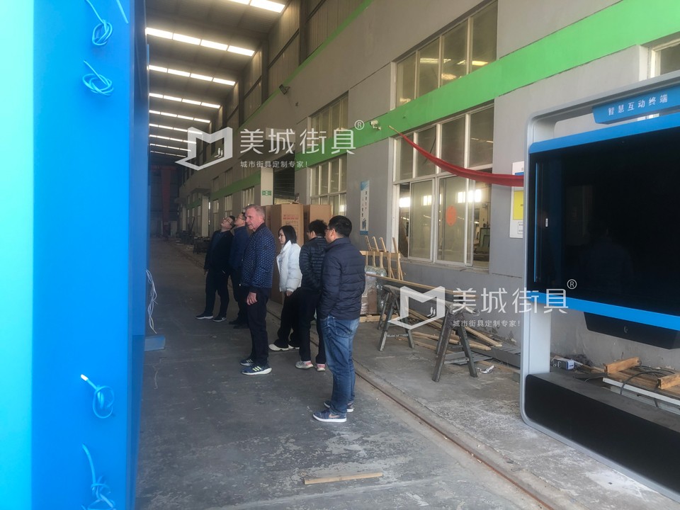 2023.11.28日,國外友人蒞臨我公司項目考察,參觀了候車亭、智能充電座椅、垃圾房等設施,經(jīng)過洽談,雙方達成了合作,下單成功。