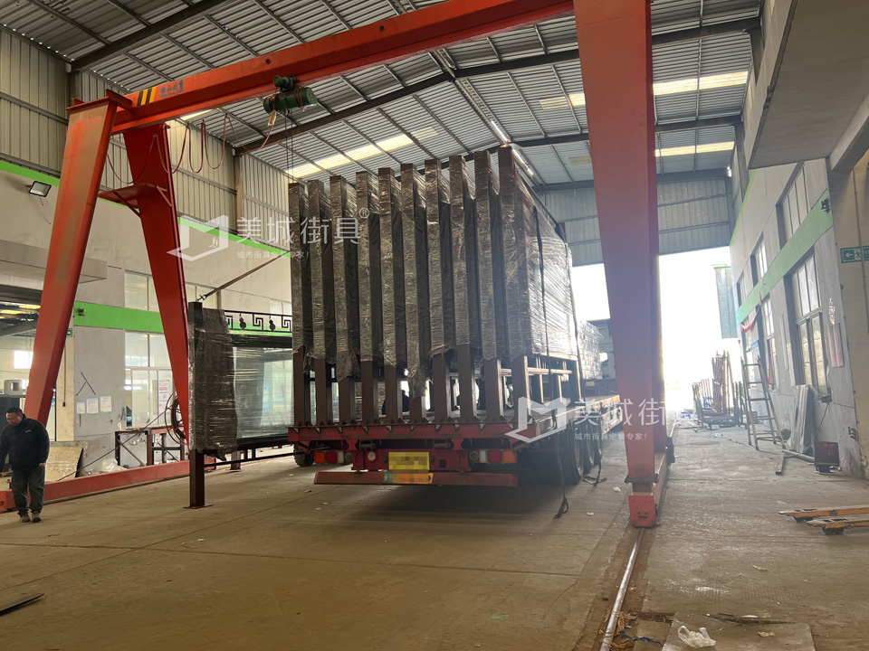 江蘇美城街具為新疆定制公交候車亭第五車發(fā)貨案例